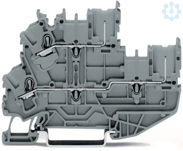 1-Leiter/1-Pin-Doppelstock-Basisklemme; Durchgangs-/Durchgangsklemme; 2,5 mm²; L/N; ohne Beschriftungsträger; für Anwendungen Ex nA geeignet; für Tragschiene 35 x 15 und 35 x 7,5; Push-in CAGE CLAMP®; 2,50 mm²; grau