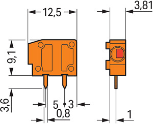 Anreihbare Leiterplattenklemme; 1,5 mm²; Rastermaß 3,81 mm; 1-polig; PUSH WIRE®; 1,50 mm²; orange