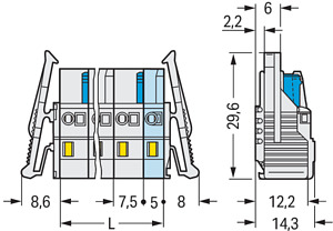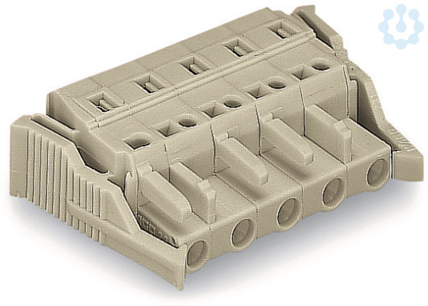 1-Leiter-Federleiste; CAGE CLAMP®; 2,5 mm²; Rastermaß 7,5 mm; 4-polig; 100% fehlsteckgeschützt; seitliche Verriegelungsklinken; Zugentlastungsplatte; 2,50 mm²; lichtgrau