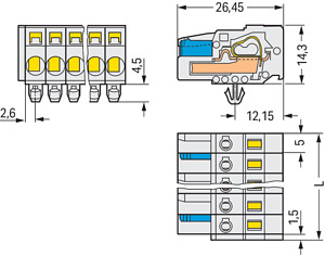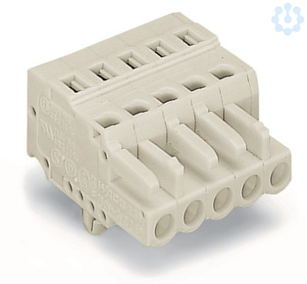1-Leiter-Federleiste; CAGE CLAMP®; 2,5 mm²; Rastermaß 5 mm; 14-polig; 100% fehlsteckgeschützt; seitliche Verriegelungsklinken; Rastfüße; 2,50 mm²; lichtgrau