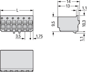 1-Leiter-Federleiste; Drücker; Push-in CAGE CLAMP®; 1,5 mm²; Rastermaß 3,5 mm; 7-polig; 1,50 mm²; lichtgrau