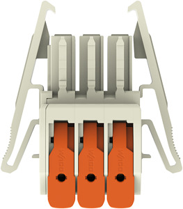 1-Leiter-Federleiste; Hebel; Push-in CAGE CLAMP®; 10 mm²; Rastermaß 7,62 mm; 3-polig; 100% fehlsteckgeschützt; seitliche Verriegelungsklinken; 10,00 mm²; lichtgrau