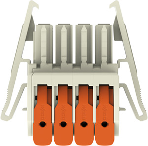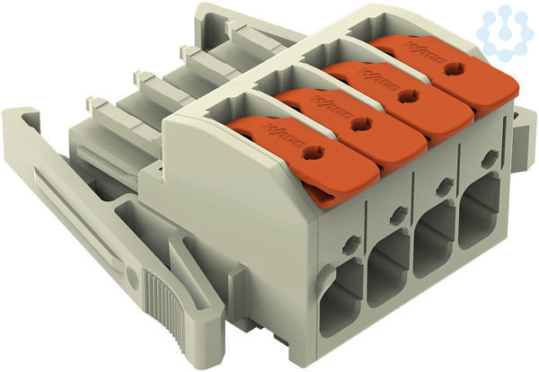 1-Leiter-Federleiste; Hebel; Push-in CAGE CLAMP®; 10 mm²; Rastermaß 7,62 mm; 4-polig; 100% fehlsteckgeschützt; seitliche Verriegelungsklinken; 10,00 mm²; lichtgrau