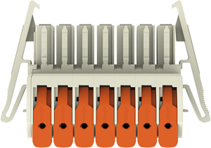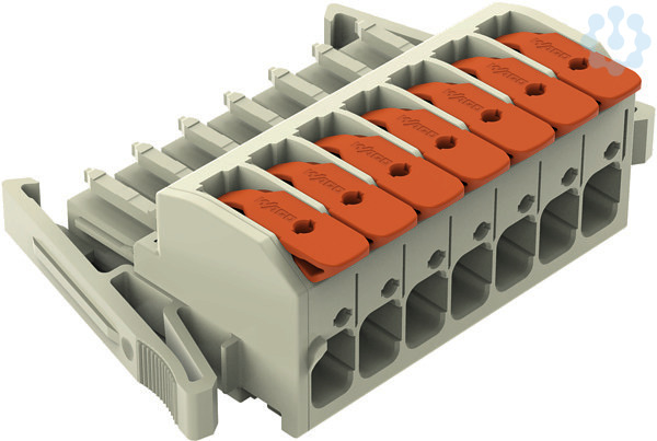 1-Leiter-Federleiste; Hebel; Push-in CAGE CLAMP®; 10 mm²; Rastermaß 7,62 mm; 7-polig; 100% fehlsteckgeschützt; seitliche Verriegelungsklinken; 10,00 mm²; lichtgrau