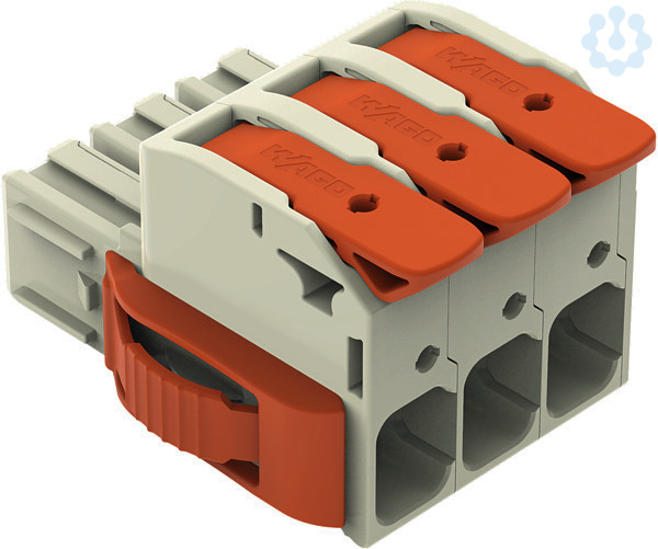 1-Leiter-Federleiste; Hebel; Push-in CAGE CLAMP®; 16 mm²; Rastermaß 10,16 mm; 3-polig; 100% fehlsteckgeschützt; seitliche Verriegelungsklinken; versilberte Kontakte; 16,00 mm²; lichtgrau