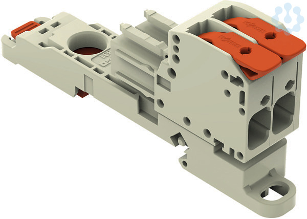 1-Leiter-Federleiste; Hebel; Push-in CAGE CLAMP®; 10 mm²; Rastermaß 7,62 mm; 2-polig; 100% fehlsteckgeschützt; TS 35/Oberflächenmontage; 10,00 mm²; lichtgrau