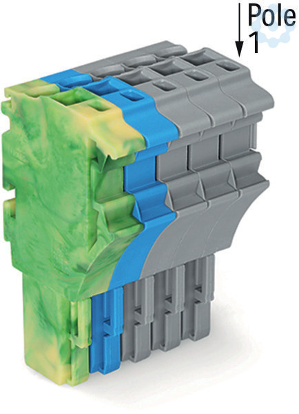1-Leiter-Federleiste; Push-in CAGE CLAMP®; 4 mm²; Rastermaß 5,2 mm; 5-polig; mittige Verriegelungsklinke; 4,00 mm²; grün-gelb/blau/grau