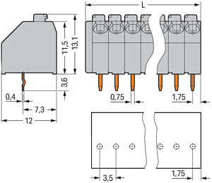 1-Leiter-Klemmenleiste 3-polig 1Lötst./Betät.dr. 3,5mm 1,5qmm blau