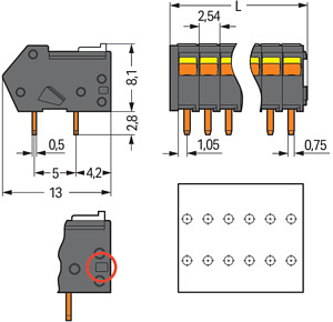 THR-Leiterplattenklemme; Betätigungsschieber; 0,5 mm²; Rastermaß 2,54 mm; 3-polig; CAGE CLAMP®; 0,50 mm²; schwarz