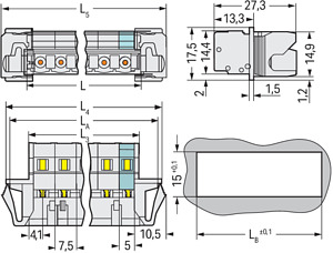 1-Leiter-Stiftleiste; CAGE CLAMP®; 2,5 mm²; Rastermaß 7,5 mm; 11-polig; 100% fehlsteckgeschützt; Snap-In-Flansch; 2,50 mm²; lichtgrau