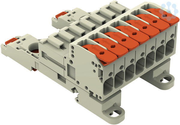 1-Leiter-Stiftleiste; Hebel; Push-in CAGE CLAMP®; 10 mm²; Rastermaß 7,62 mm; 7-polig; 100% fehlsteckgeschützt; TS 35/Oberflächenmontage; 10,00 mm²; lichtgrau