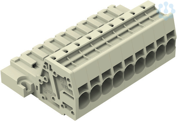 1-Leiter-Stiftleiste; Push-in CAGE CLAMP®; 10 mm²; Rastermaß 7,62 mm; 9-polig; 100% fehlsteckgeschützt; Gewindeflansch; 10,00 mm²; lichtgrau