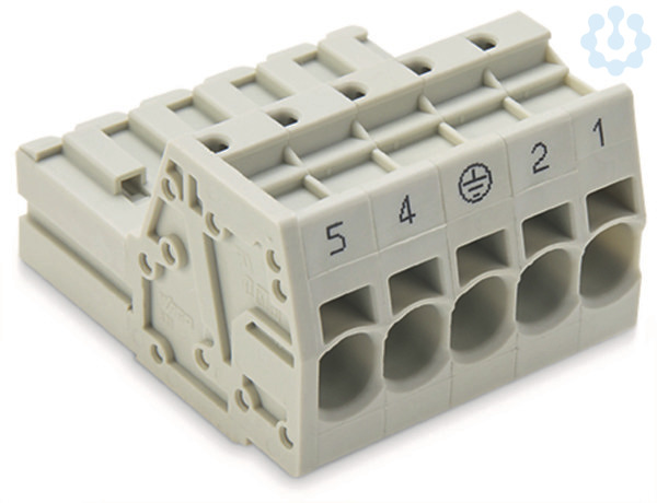 1-Leiter-Stiftleiste; Push-in CAGE CLAMP®; 10 mm²; Rastermaß 7,62 mm; 5-polig; voreilender PE-Kontakt; 100% fehlsteckgeschützt; direkt bedruckt; 10,00 mm²; lichtgrau