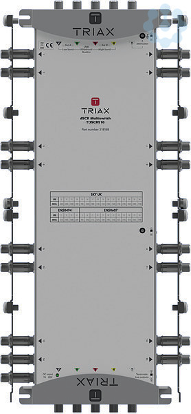 Die TdSCR-Serie besteht aus vier Unicable-Multischaltern mit 4, 8, 12 oder 16 Ausgängen (TdSCR 504/508/512/516). Die Quattro- und Wideband-kompatiblen Geräte sind kaskadierbar und eignen sich daher auch für die Umsetzung großer Multischalter-Systeme. 16 SCR/dSCR/Legacy-Ausgänge mit bis zu 16 Userbändern pro Ausgang Kaskadierbar zur Umsetzung großer Multischalter- Systeme Quattro und Wideband kompatibel Mit Wideband LNB, Umsetzung von 2 Satelliten Positionen möglich 1 terrestrischer Eingang zur Einspeisung von DVB-T2/UKW/Digitalradio Pegelsteller für terrestrische Signale (0-20 dB) Einheitliche Signalverteilung mit AGC an den Ausgängen (nur im SCR/dSCR Betrieb)Automatische Erkennung Legacy/dSCR 1 DC-Eingang zur Spannungsversorgung mit externem Netzteil (nicht im Lieferumfang) 75 ? Selbstabschluss über Stellschalter (keine Abschlusswiderstände erforderlich) Kann als Kaskaden-, Standalone-, oder Abschlußschalter eingesetzt werden inklusive Erdungsschienen und Schnellsteckverbinder sehr niedriger Stromverbrauch