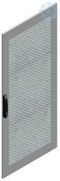 Spacial SF Tür mit Belüftungsschlitzen. Für eine natürliche Belüftung des Gehäuses, Einbaulage von vorne. Verriegelungssystem mit Griff und Doppelbart-Einsatz 5mm. Stahlblech. Grau RAL 7035.