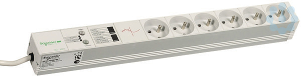 19Z-Steckdosenl. 6-fach UTE 1HE 250V 16A m.Blitzstromableiter