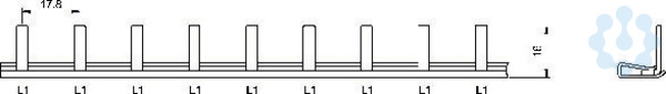 1-polige Phasenschiene, grau Querschnitt: 10mm² Modulbreite: 17,8mm Schrittabstand: 17,8mm Fahnenanzahl: 57 Eindringtiefe: 12mm Phasenfolge: L,L,L, Länge: 1012mm Stegbreite: 4mm Fabrikatszuordnung: Standard, ABL, Doepke, F&G, Mersen, GE/AEG, Hager, Legrand, Merlin Gerin, Moeller, OEZ, Schneider, Schrack, Siemens, Woehner, Eaton, Noark, Rockwell Bauform: 90° Anwendung: LS Passende Endkappen A11 /A69 (diese sind separat zu bestellen)