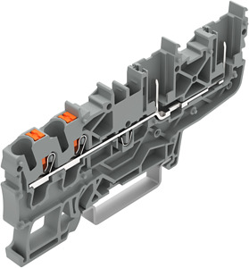 2-Leiter/2-Pin-Basisklemme; mit Drücker; 2,5 mm²; für Tragschiene 35 x 15 und 35 x 7,5; Push-in CAGE CLAMP®; 2,50 mm²; grau