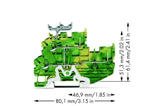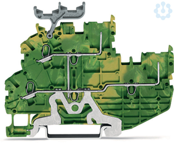 2-Leiter/2-Pin-Doppelstock-Basisklemme; 2-Leiter/2-Pin-Schutzleiterklemme; PE; intern gebrückt; für Tragschiene 35 x 15 und 35 x 7,5; Push-in CAGE CLAMP®; 1,00 mm²; grün-gelb