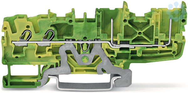 2-Leiter/2-Pin-PE-Basisklemme; 2,5 mm²; für Tragschiene 35 x 15 und 35 x 7,5; Push-in CAGE CLAMP®; 2,50 mm²; grün-gelb