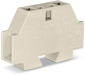Platzsparende 2-Leiter-Endklemme; ohne Drücker; für Anwendungen Ex e II geeignet; ohne seitlich überstehenden Rastfuß; 1-polig; für Klemmenleisten mit Rastfüßen; 4 mm²; CAGE CLAMP®; 4,00 mm²; lichtgrau