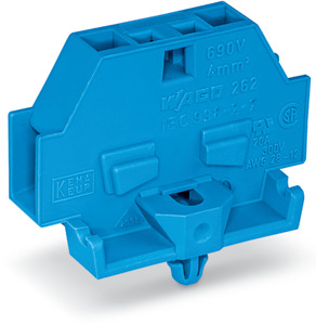 2-Leiter-Klemme; ohne Drücker; für Anwendungen Ex i geeignet; mit Rastfuß; 1-polig; für Blechdicke 0,6 - 1,2 mm; Befestigungsloch Ø 3,5 mm; 4 mm²; CAGE CLAMP®; 4,00 mm²; blau