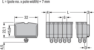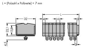 2-Leiter-Klemmenleiste 6pol. grau mit Rastfuss