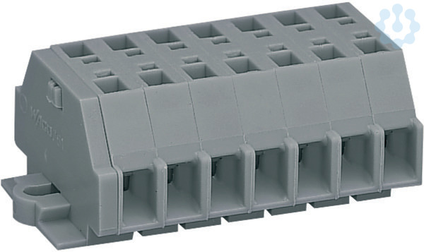 2-Leiter-Klemmenleiste; ohne Drücker; mit Befestigungsflanschen; 7-polig; für Schraub- u.ä. Befestigungsarten; Befestigungsloch Ø 3,2 mm; 2,5 mm²; CAGE CLAMP®; 2,50 mm²; grau