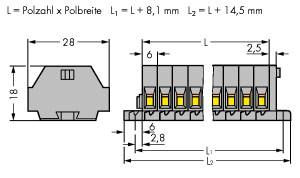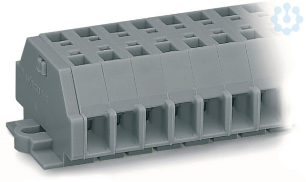 2-Leiter-Klemmenleiste; ohne Drücker; mit Befestigungsflanschen; 9-polig; für Schraub- u.ä. Befestigungsarten; Befestigungsloch Ø 3,2 mm; 2,5 mm²; CAGE CLAMP®; 2,50 mm²; grau