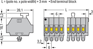 2-Leiter-Klemmenleiste einseitig mi t Betätigungsdrückern mit Rastfüsse