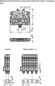 2-Leiter-Mini-Durchgangsklemme; mit Betätigungsöffnung; 1 mm²; mit Rastfuß; seitliche und mittige Beschriftung; mit Prüföffnung; Push-in CAGE CLAMP®; 1,00 mm²; blau