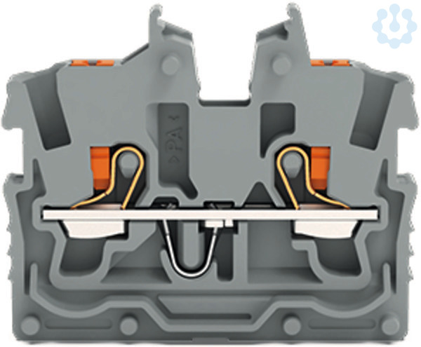 2-Leiter-Mini-Durchgangsklemme; mit Drücker; 1 mm²; Mittelklemme ohne Rastfuß, ohne Flansch; seitliche und mittige Beschriftung; mit Prüföffnung; Push-in CAGE CLAMP®; 1,00 mm²; grau
