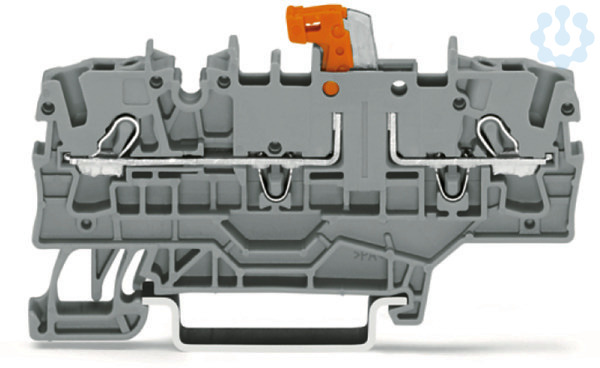 2-Leiter-Trenn- und Messklemme; mit zusätzlicher Brückung; Trennmesserhalter orange; für Tragschiene 35 x 15 und 35 x 7,5; 2,5 mm²; Push-in CAGE CLAMP®; 2,50 mm²; orange