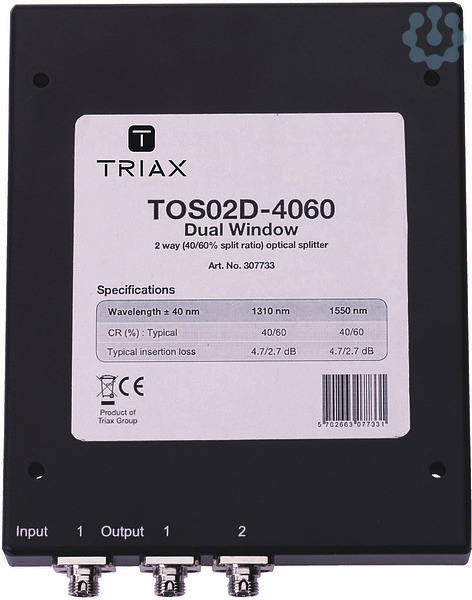 Für Singlemode-Systeme, hervorragende mechanische Stabilität, geringe Eingangsdämpfung, TOS 02D...08D: symmetrischer Verteiler mit FC/PC-Anschlüssen an Ein- und Ausgängen, TOS 02D-1090...4060: unsymmetrischer Zweifach-Abzweiger, mit FC/PC-Anschlüssen an Ein- und Ausgängen, Wellenlänge 1310 und 1550 nm.