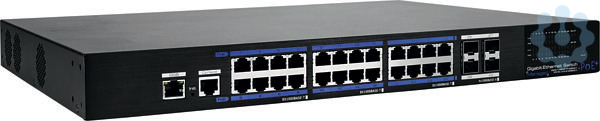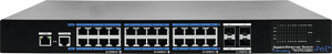 Der 24-Port PoE Gigabit Switch Managed wurde speziell für die Anwendung in professionellen und hochauflösenden Videoüberwachungssystemen entwickelt und bietet 24 Gigabit Downlink PoE Ports und 4 Uplink Steckplätze für ein Gigabit SFP Modul.