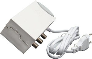 24 V-Netzteil zur Versorgung einer UFO-Antenne oder der MFA-Mastvorverstärker-Serie. inklusive 2-fach Verteiler mit 2 F-Ausgängen weißes Kunststoff-Gehäuse mit F-Anschlüssen an allen Ein- und Ausgängen für Click on"- Befestigung an der Wand für Innenmontage"