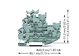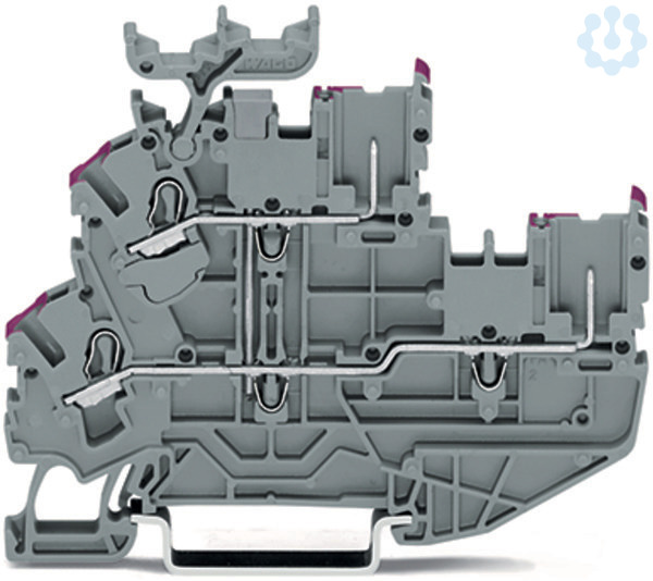 2-Leiter/2-Pin-Doppelstock-Basisklemme; 2-Leiter/2-Pin-Durchgangsklemme; 2,5 mm²; L; intern gebrückt; Leitereinführung violett bedruckt; für Tragschiene 35 x 15 und 35 x 7,5; Push-in CAGE CLAMP®; 2,50 mm²; grau