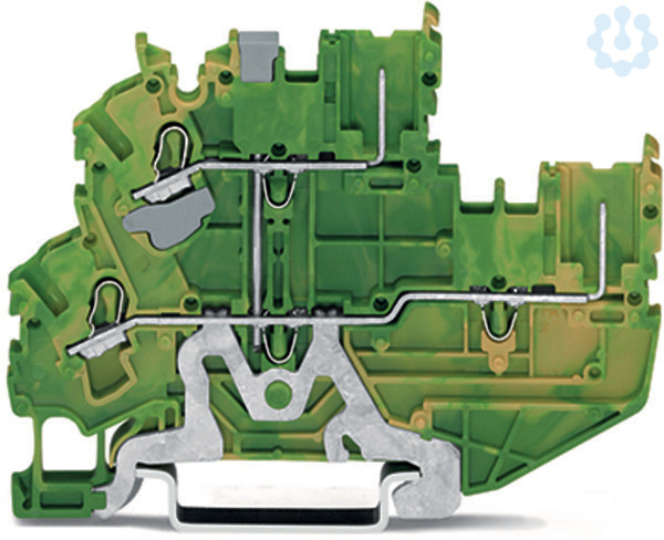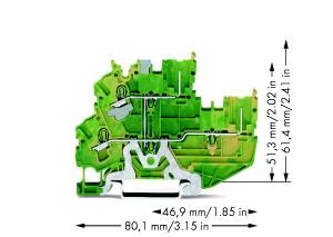 2-Leiter/2-Pin-Doppelstock-Basisklemme; 2-Leiter/2-Pin-Schutzleiterklemme; 2,5 mm²; PE; intern gebrückt; für Tragschiene 35 x 15 und 35 x 7,5; Push-in CAGE CLAMP®; 2,50 mm²; grün-gelb