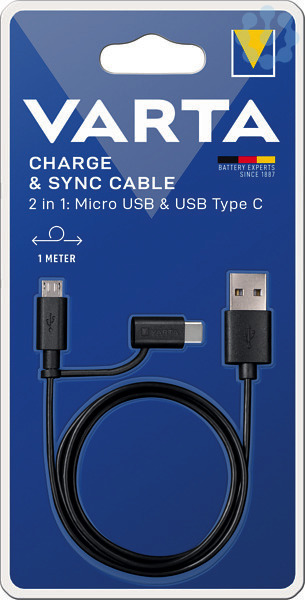 Das VARTA 2in1 Charge und Sync Kabel mit einem Micro USB und einem USB Type C Anschluss ermöglicht die Synchronisierung Ihrer Daten, während Sie Ihre Smartphones, Tablets oder anderen mobilen Geräte laden. Es ist kompatibel mit allen Micro USB/ Android-Mobilgeräten wie Samsung Galaxy, HTC, Huawei, Lenovo, Sony, Nexus, Nokia, OnePlus, Google, Xiaomi und vielen weiteren und allen Geräten mit USB Type C wie Apple Macbook 12 (2015) und Pro. Samsung Galaxy Note 7, Samsung Galaxy Tab Pro, Huawei P9 Plus / P9 / Nova / Nova Plus / ZenPad 8.0 S, LG G5 / V20, HTC 10, Lenovo ZUK Z1 / Z2 Plus, Moto Z / Z Force, ASUS ZenFone 3 / Deluxe / Ultra, Google ChromeBook, Google Nexus 5X / 6P, OnePlus 2/3, Lumia 950 / 950XL, Sony Xperia XZ und viele mehr. Schwarzes Kabel mit 1m Länge.