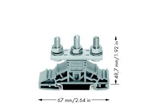 Bolzenklemme; seitliche Beschriftungsaufnahmen; für Tragschiene 35 x 15 und 35 x 7,5; 3 Bolzen, M6; 35,00 mm²; grau
