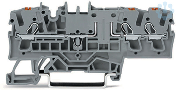 3-Leiter-Basisklemme; mit Drücker; für Tragschiene 35 x 15 und 35 x 7,5; 2,5 mm²; Push-in CAGE CLAMP®; 2,50 mm²; grau
