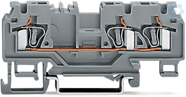 3-Leiter-Durchgangsklemme; 4 mm²; mit Prüföffnung; ohne Schirmleiterschiene; mittige Beschriftung; für Tragschiene 35 x 15 und 35 x 7,5; CAGE CLAMP®; 4,00 mm²; grau