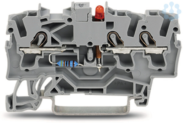 Bauelementklemme; 3 Leiter; LED rot; DC 24 V; für Tragschiene 35 x 15 und 35 x 7,5; 2,5 mm²; Push-in CAGE CLAMP®; 2,50 mm²; grau