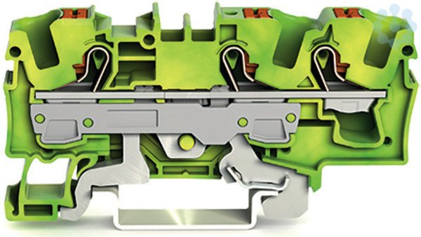 3-Leiter-Schutzleiterklemme mit Drücker 6mm² grün-gelb