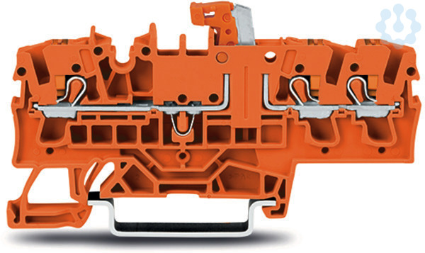 3-Leiter-Trenn- und Messklemme; mit Drücker; mit Prüfmöglichkeit; Trennmesserhalter orange; für Tragschiene 35 x 15 und 35 x 7,5; 2,5 mm²; Push-in CAGE CLAMP®; 2,50 mm²; orange