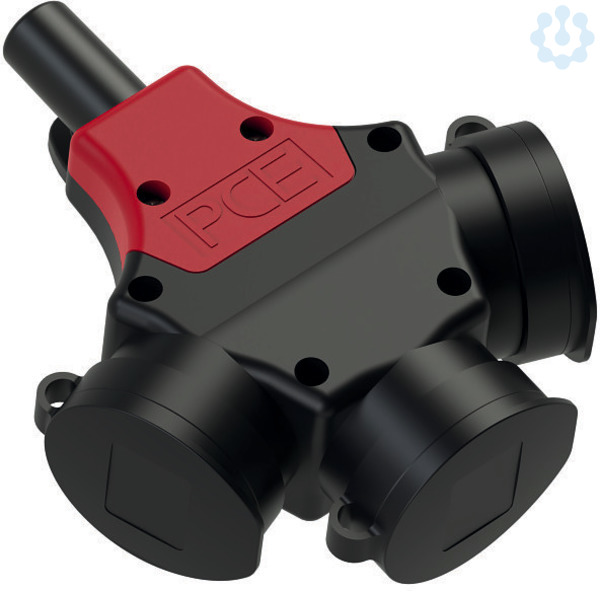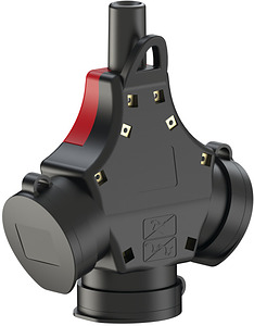 3-Wegeku. 2P+E 3P Deckel+Band Kun./Gummi rt/sw IP44 16A 250V