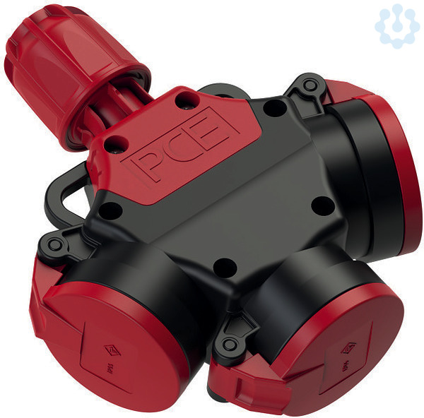 3-Wege Schutzkontaktkupplung Vollgummi mit Klappdeckel; 16A 2p+E 250V IP44 (nach österr./deutsch. System); Einsatz: Gummi (TPE); aussenliegende Zugentlastung; 3-polige Anschlussklemme; für erschwerte Bedingungen; Schutzart: IP44