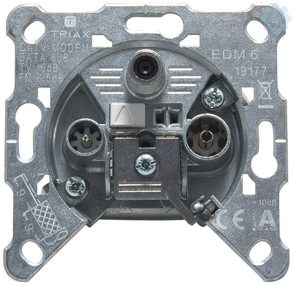 EDM 6, 3-Loch Multimedia-Einzeldose3-Wege-Multimediadosen dienen zum Anschluss von TV-Gerät, FM-Radio sowie Datenmodem an moderne BK-Kabelfernsehnetze mit Internetzugang. Die neu entwickelte TRIAX Dosen-Plattform lässt Sie heute Zeit und morgen Geld sparen - die Dosen sind komfortabel zu installieren und sowohl für die aktuellen als auch für erweiterte Anforderungen in der Zukunft bestens gerüstet.Merkmale: Frequenzbereich von 5-1200-1800 MHz für alle Stufen einer zukünftigen DOCSIS-3.1-Migration, kompatibel mit dem gegenwärtigen Betriebsmodus, exzellente Signal-Übertragungseigenschaften, erhöhte Schirmung Klasse A+ 10dB, schnelle und zuverlässige Montage (Steck-Klemme-Technik), geprüft und gelistet z. B. von Vodafone Kabel Deutschland