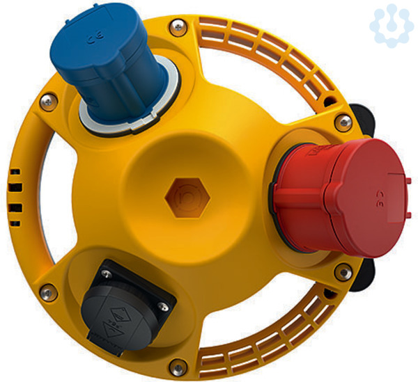 MENNEKES 3KRAFT anschlussfertig verdrahtet Schutzart IP 44 Gehaeuse: 1 AMAPLAST-Gehaeuse schwarz (aehnlich RAL 9005) mit anscharniertem Geraetedeckel (gelb), integrierten Aufhaengeoesen und Standfuessen Bestueckung: Pos.01 1 CEE-Steckdose 16A 5p 400V Pos.02 1 CEE-Steckdose 16A 3p 230V (966) Pos.03 1 Schuko-Steckdose 16A 2p+E 230V Leitungseinfuehrungen zum Ausbrechen: oben: 1x M32, 1x M25, 2x M20 seitlich: 1x M25 1x Durchfuehrung oben fuer Druckluftanschluss oder zusaetzlichen Haltegriff (beides ist als Zubehoer erhaeltlich)
