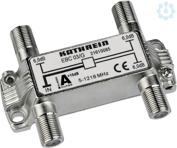 3fach-Verteiler, 6,0 dB, 5-1218 MHz, F-Connector, Trennkondensatoren an Ein- und Ausgaengen, Schirmungsklasse A gem. CENELEC EN 50083-2, Vodafone- KDG-Freigabe